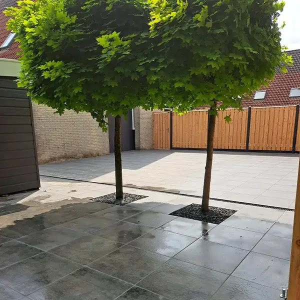 Ook voor de afwerking rondom de tegels ben je bij ons aan het juiste adres. We zorgen voor strakke voegen, een nette overgang naar je borders en een goede afwatering door middel van lijngoten. Zo combineren we vakmanschap met duurzaamheid en krijg jij een tuin waar je jarenlang plezier van hebt.